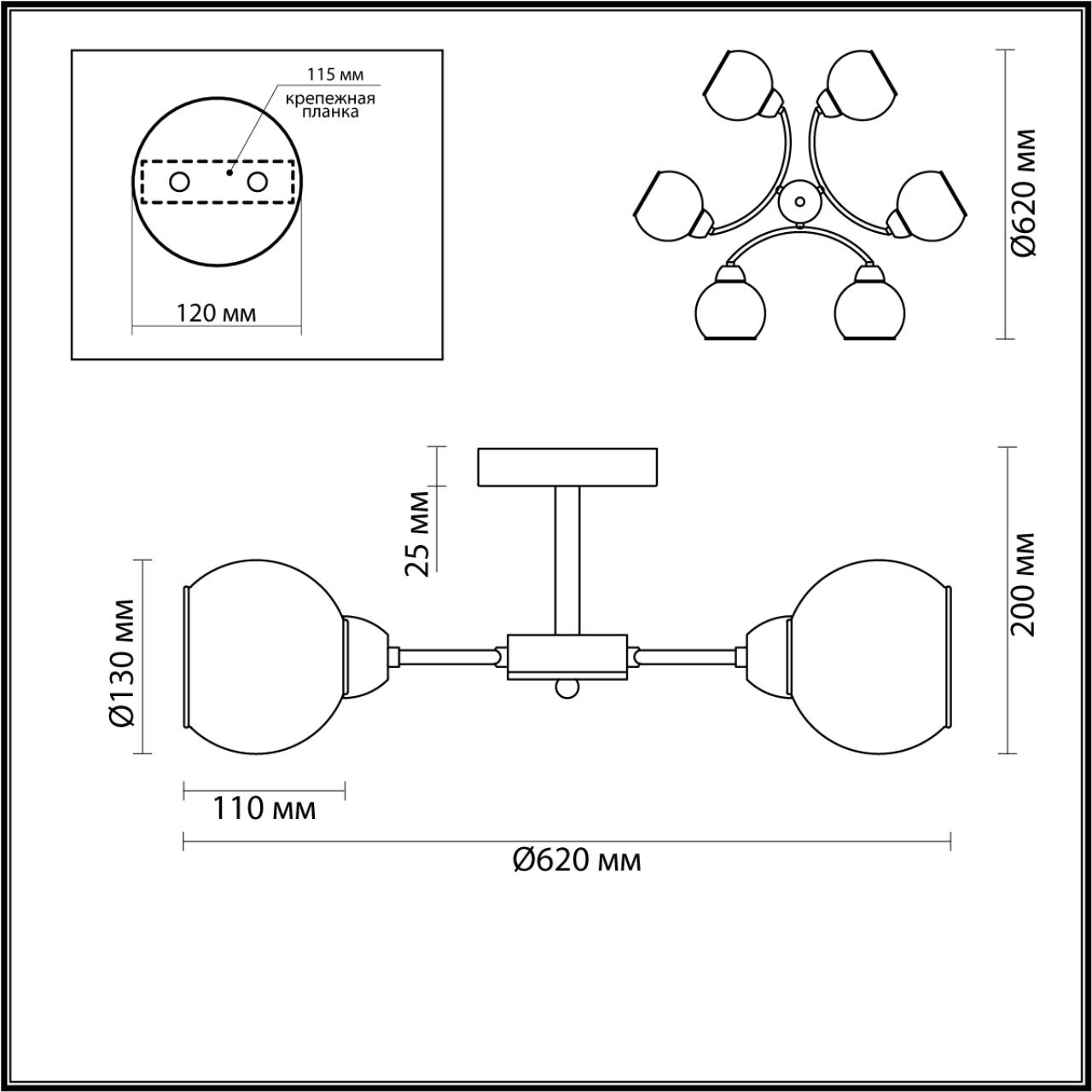 Пять роскошных плафонов-абажуров сделаны из прочного матового стекла, оформлены растительным прозрачным орнаментом, делающим ее воздушной, легкой, словно парящей в воздухе.