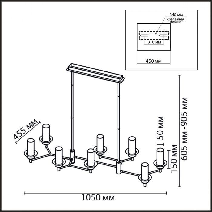 Крепится модель к потолку легко, при помощи встроенной монтажной планки.
