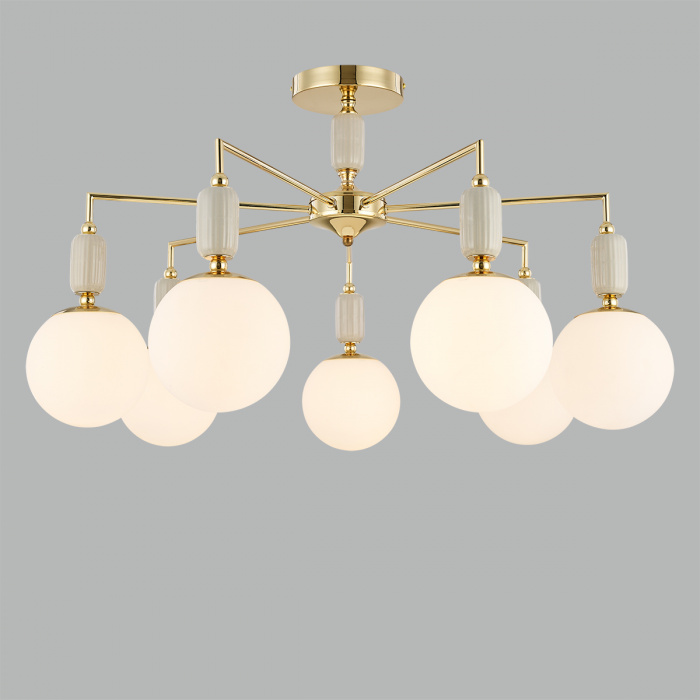 LUMION 6580/7C CLASSI LN26 36 французское золото, серый/белый металл, керамика/стекло Люстра потолочная E14 7*40W 220V VIVIEN – купить в Москве по цене 22 565 руб.