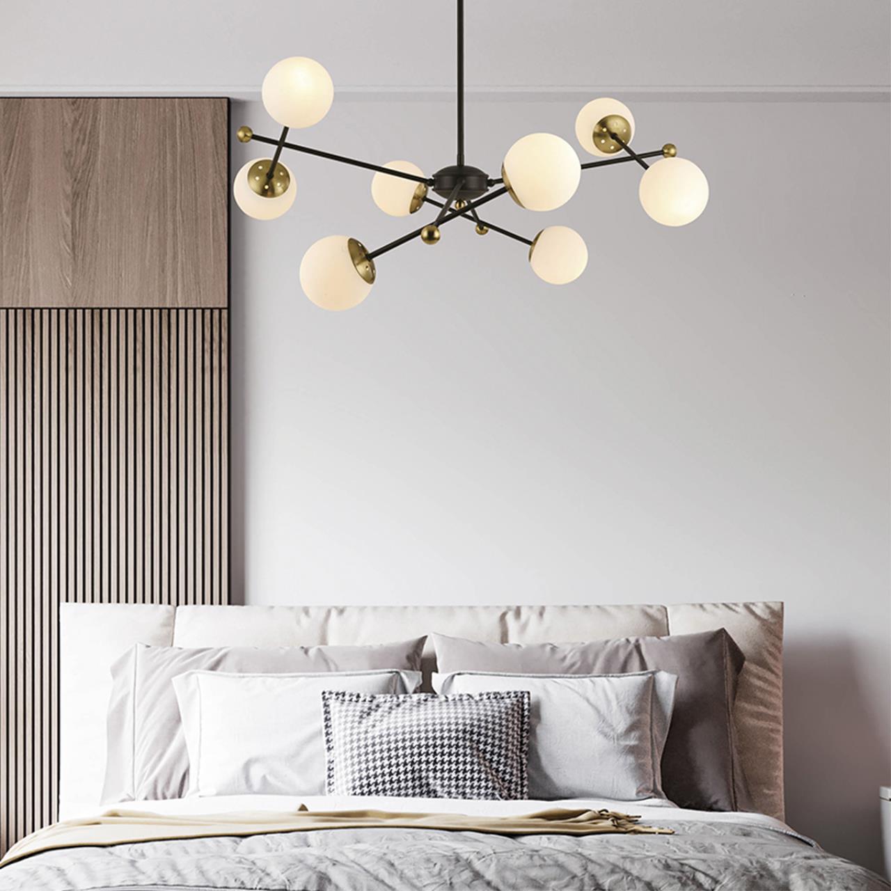 Линия MELODY отличается элегантностью и простотой. Каждый светильник коллекции исполняет свою мелодию современного стиля. Черный металлический каркас образует гармоничную конструкцию в виде прямых лучей. Они дополнены аккуратными золотыми акцентами и изящно поддерживают белые стеклянные плафоны в виде шара. Строгие линии и геометрическое расположение светильников создают мелодичный баланс, делая эти светильники идеальными для современных гостиных, столовых зон, ресторанов и кафе. Удачное сочетание черного каркаса и белых плафонов напоминает ноты на нотной линейке, а сферические элементы дизайна придают серии игривость и лаконичность.
