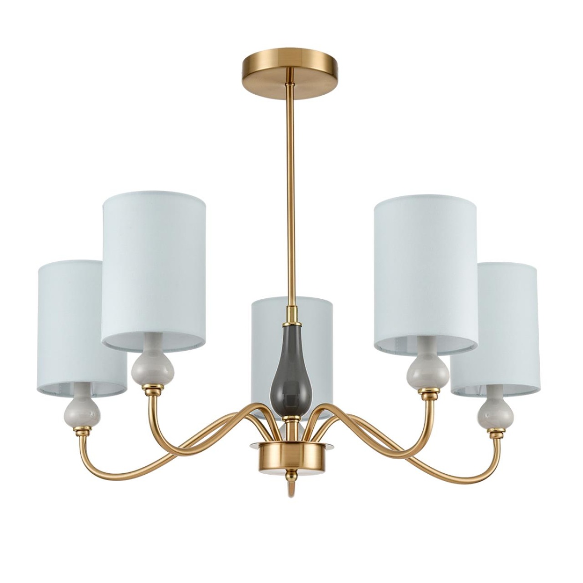 LUMION 6590/5 CLASSI LN26 055 латунь/мятный зеленый, металл, керамика/текстиль Люстра подвесная E14 5*40W 220V ANRI – купить в Москве по цене 18 470 руб.