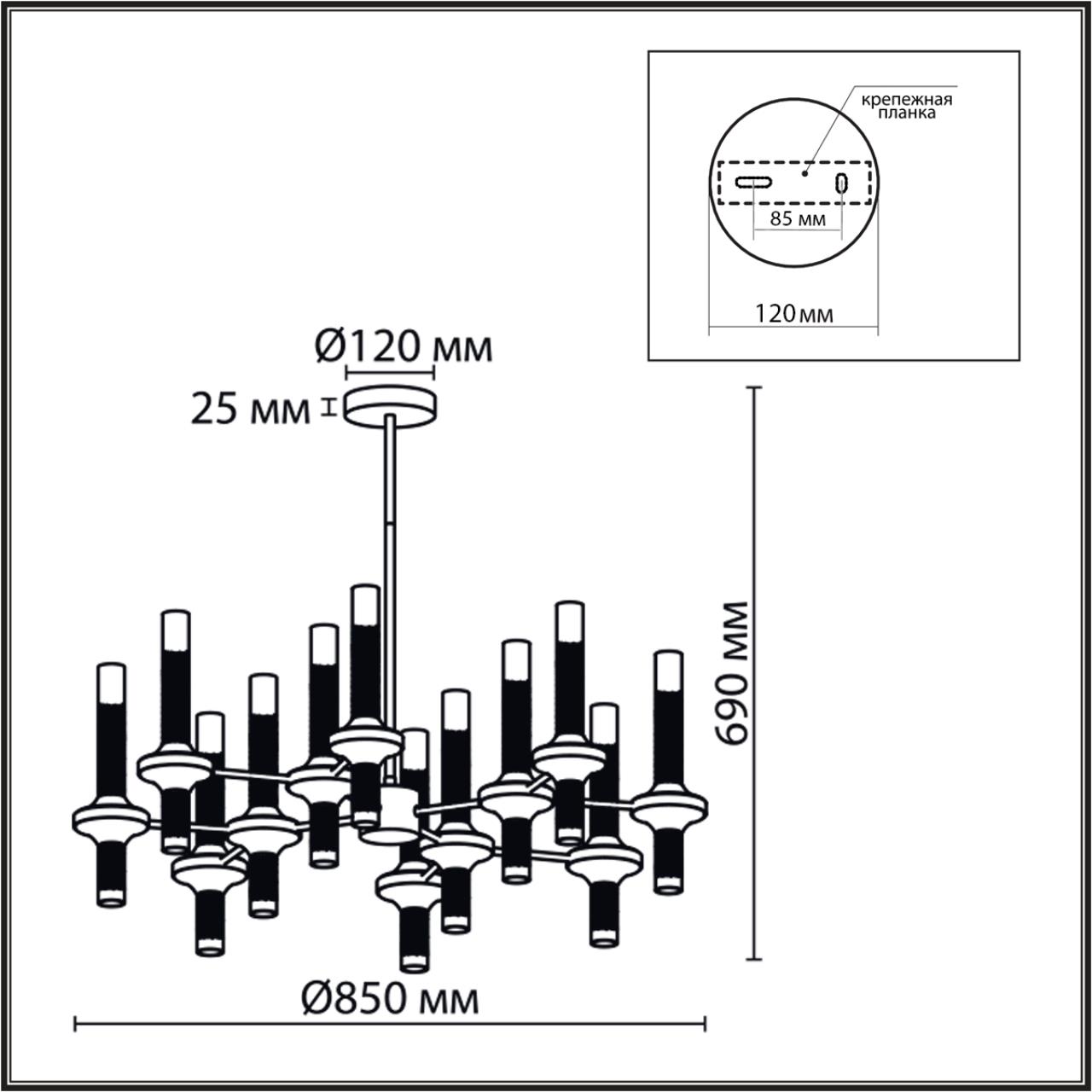 Пять роскошных плафонов-абажуров сделаны из прочного матового стекла, оформлены растительным прозрачным орнаментом, делающим ее воздушной, легкой, словно парящей в воздухе.