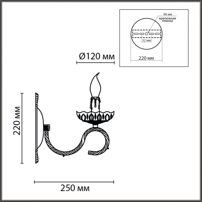 Металлическая основа – двойная фигурная, стилизована роскошными резными узорами. Материал арматуры – прочный металл, покрытый благородной, золотистой патиной в модном стиле ретро.