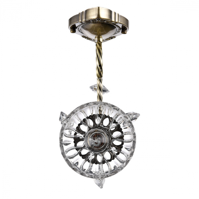 Между лепестками этой потолочной люстры расположены длинные свисающие подвески, а по центру – стильный декор – подвесной большой многогранный хрустальный шар, изумительно переливающийся под дневным или искусственным освещением.