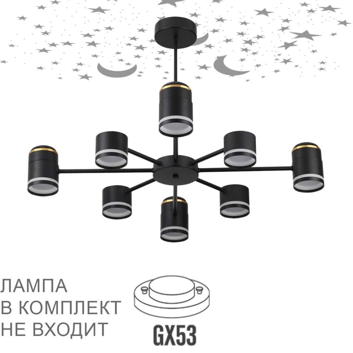 LUMION 8234/8C COMFI LN25 000 черный, металл/акрил Люстра потолочная GX53 LED 8*10W + LED-проектор 4*5W 2700К 220V VIRSAVA – купить в Москве по цене 13 640 руб.