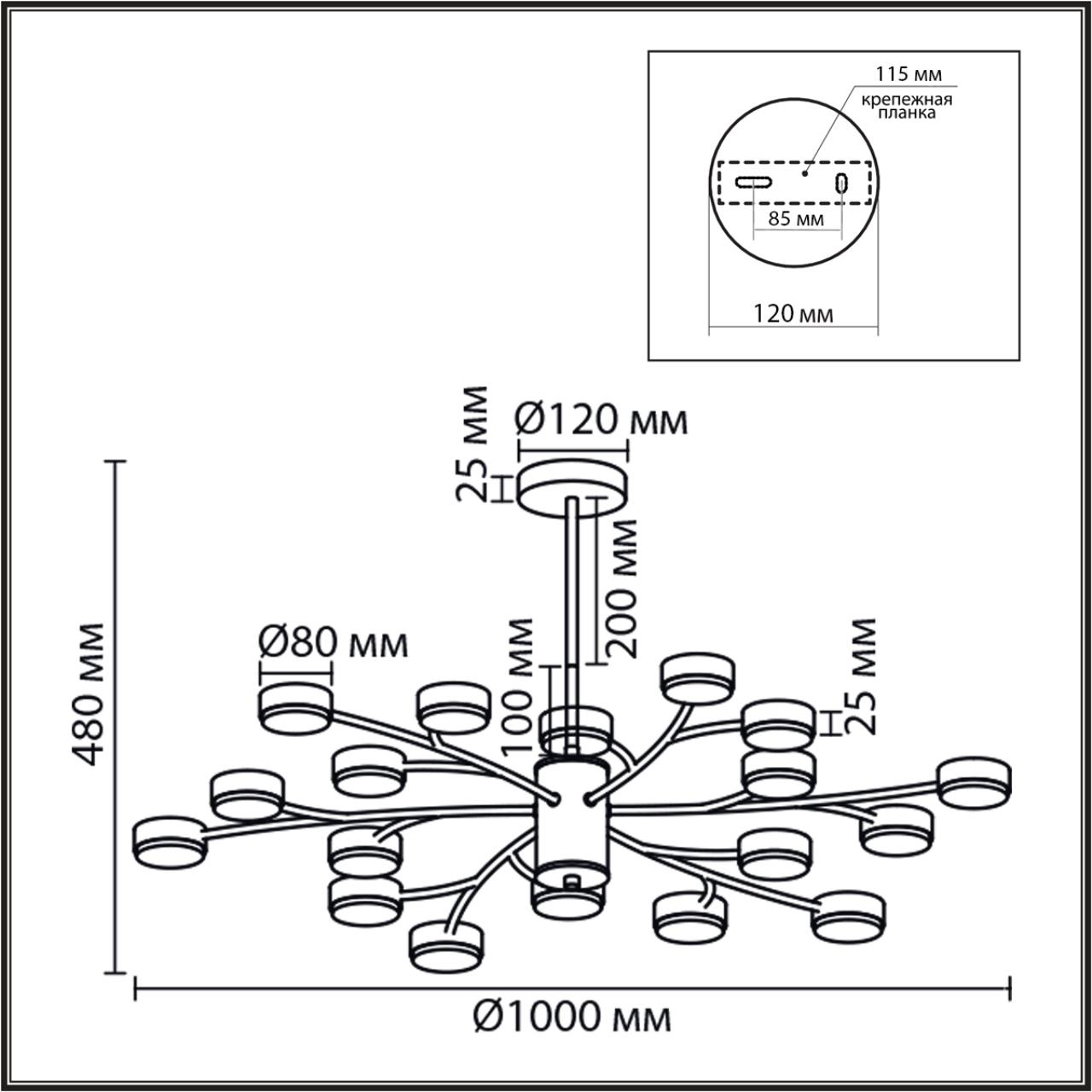 Крепится модель к потолку легко, при помощи встроенной монтажной планки.