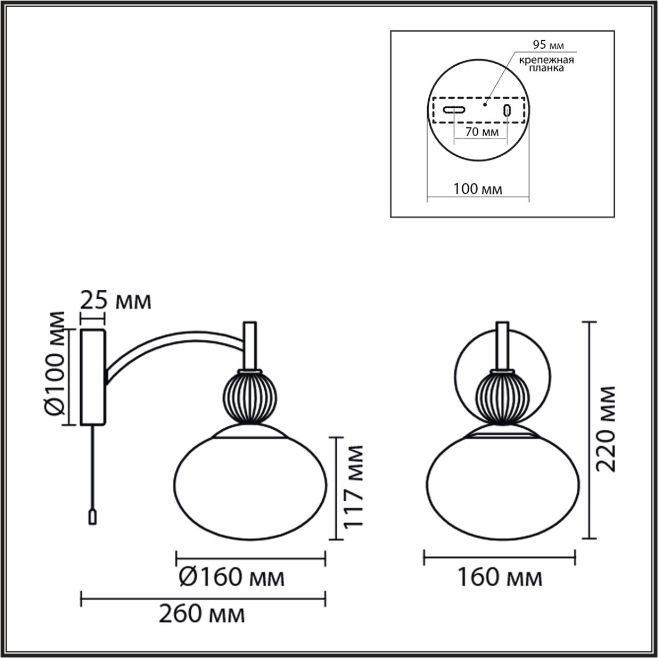 У нее имеется один большой фигурный плафон в виде экзотичного цветка из матового стекла с 3 лампами (поддерживает работу со стандартными и светодиодными), есть возможность подключения диммера, регулирующего текущую мощность освещения.