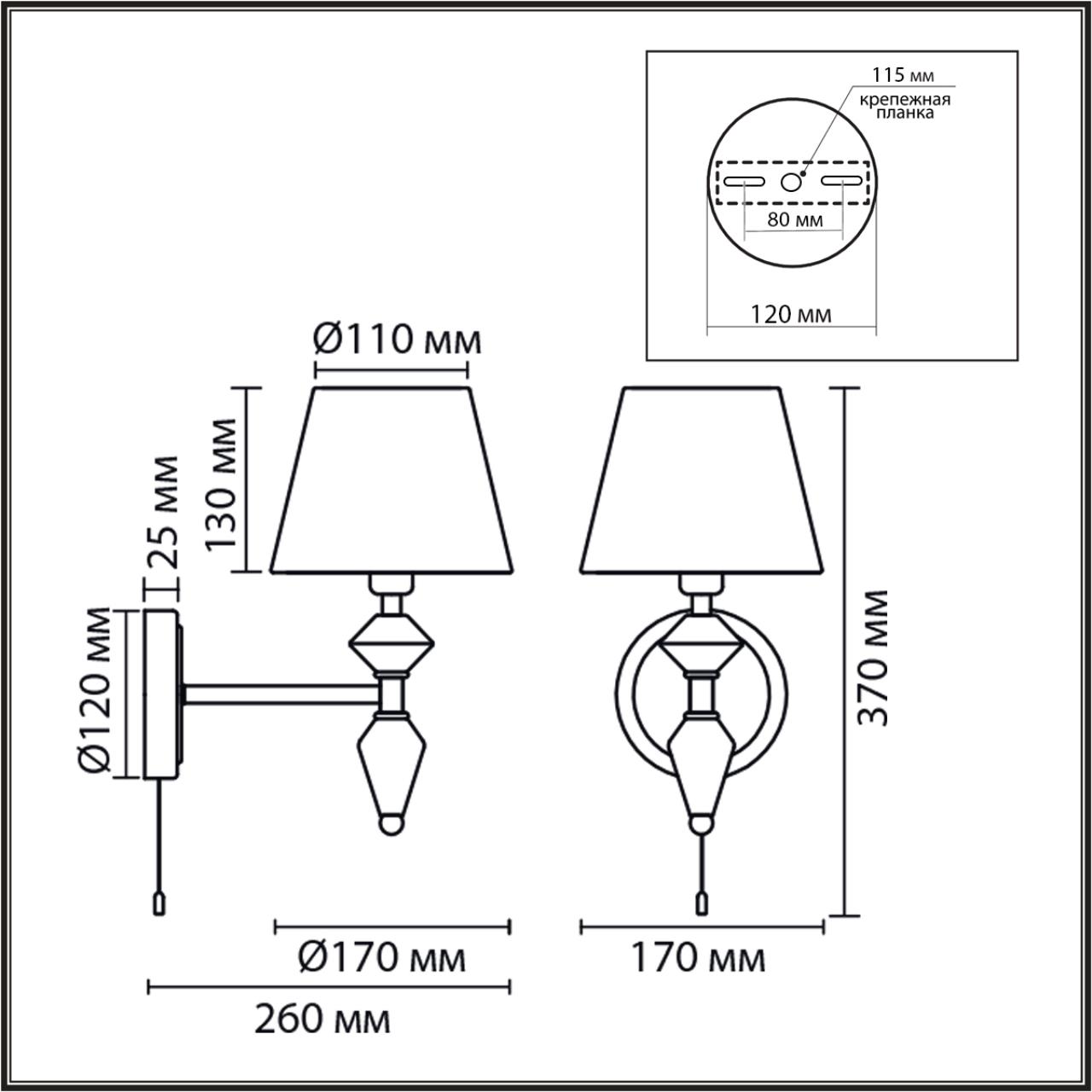 LUMION 8275/1W CLASSI LN26 048 латунь/зеленый, металл/керамика/ткань Бра Е14 1*40W 220V VERMONT – купить в Москве по цене 3 990 руб.