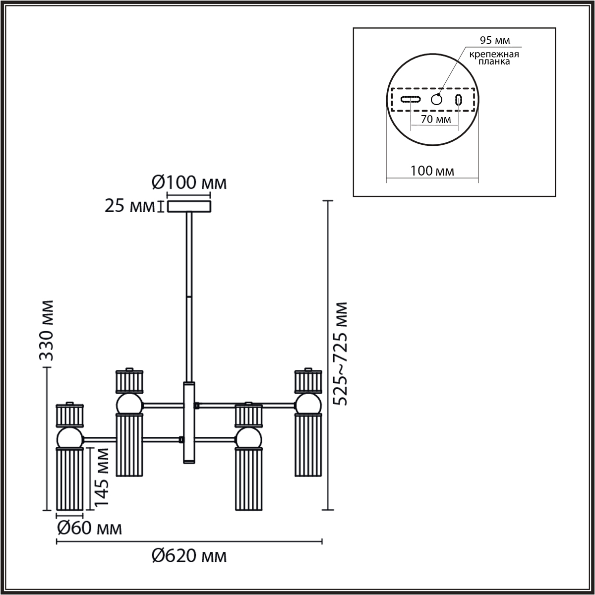 Пять роскошных плафонов-абажуров сделаны из прочного матового стекла, оформлены растительным прозрачным орнаментом, делающим ее воздушной, легкой, словно парящей в воздухе.
