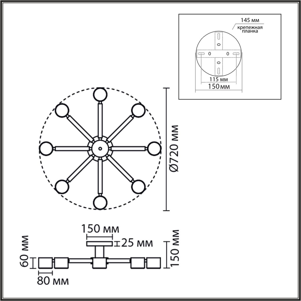 Крепится модель к потолку легко, при помощи встроенной монтажной планки.