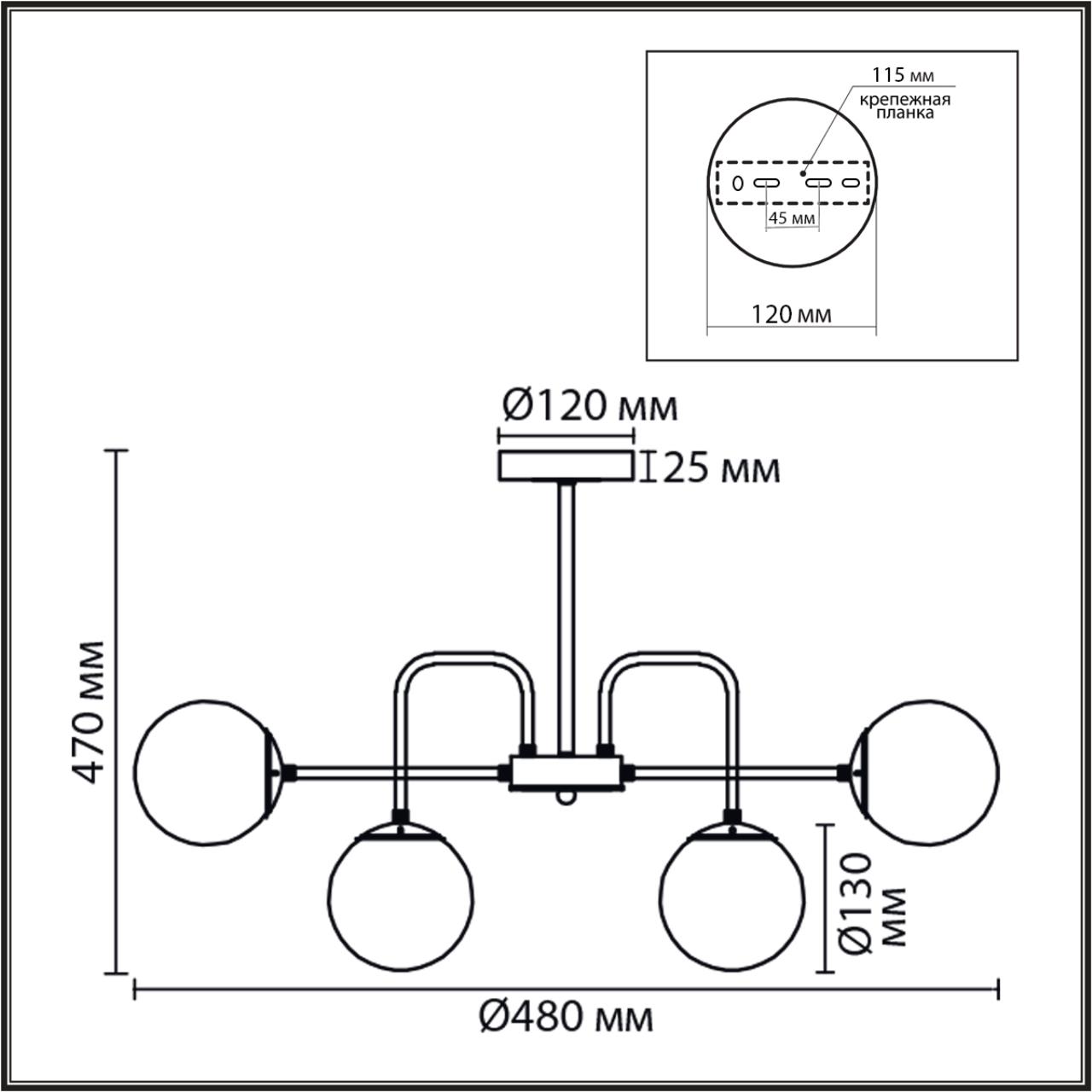 Пять роскошных плафонов-абажуров сделаны из прочного матового стекла, оформлены растительным прозрачным орнаментом, делающим ее воздушной, легкой, словно парящей в воздухе.