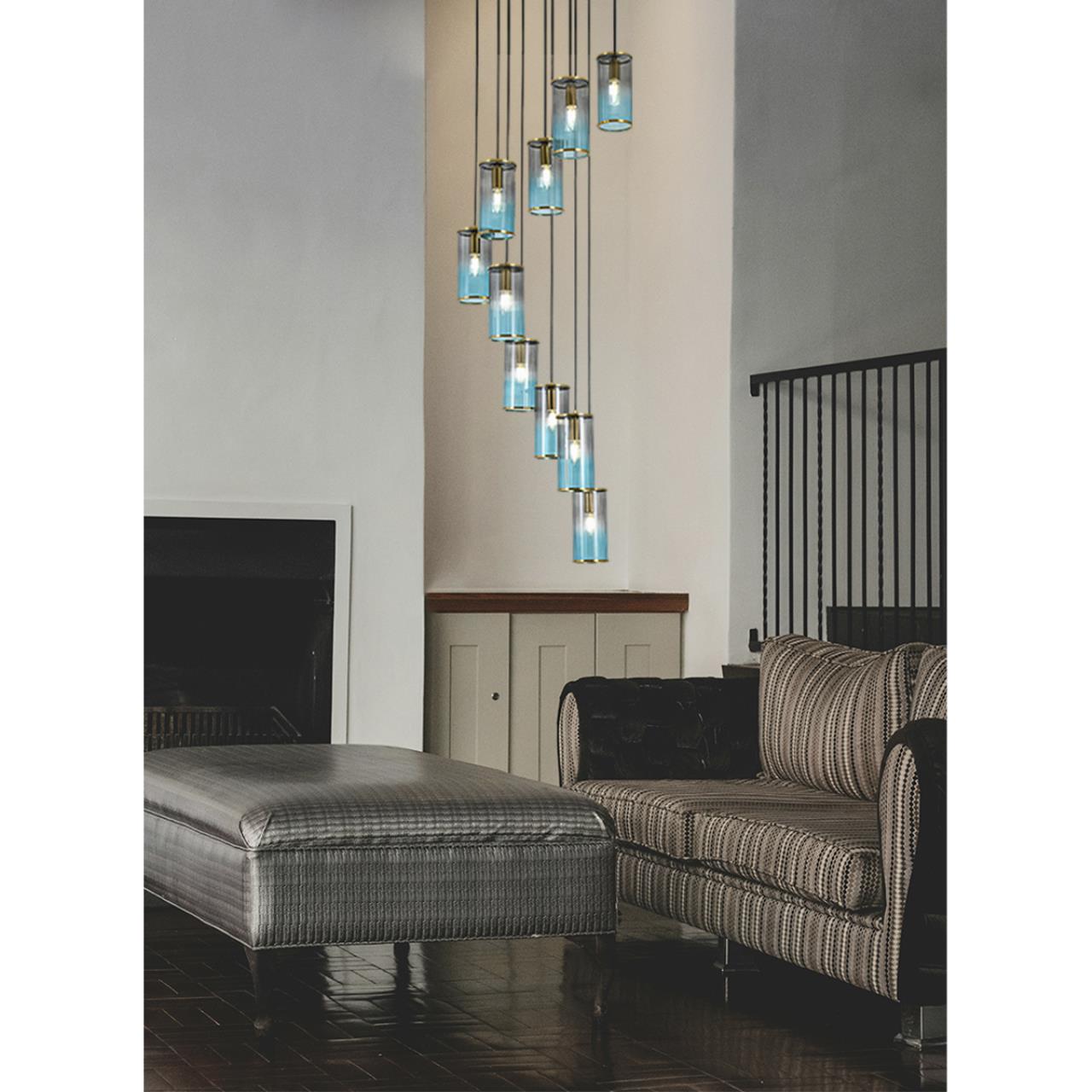 Подвесной каскадный светильник MURANO — настоящий шедевр современного дизайна, который превращает обычное освещение в произведение искусства. Его композиция из стеклянных цилиндров, словно музыкальные ноты, создает ощущение гармонии и ритма. Каждый элемент светильника — это отдельная история, которая вместе с другими формирует уникальную симфонию света. Серо-синий оттенок стекла добавляет глубины и прохлады, а бронзовые акценты придают изысканности и тепла. Светильник словно парит в воздухе, создавая эффект невесомости и легкости. Он не просто освещает пространство, а наполняет его атмосферой уюта и стиля. Данный светильник идеально подойдет, как второй свет или для освещения лестничных пролетов, где ценится индивидуальность и внимание к деталям. Эта люстра станет центральным элементом помещения, привлекая взгляды и подчеркивая вашу любовь к красоте и качеству.