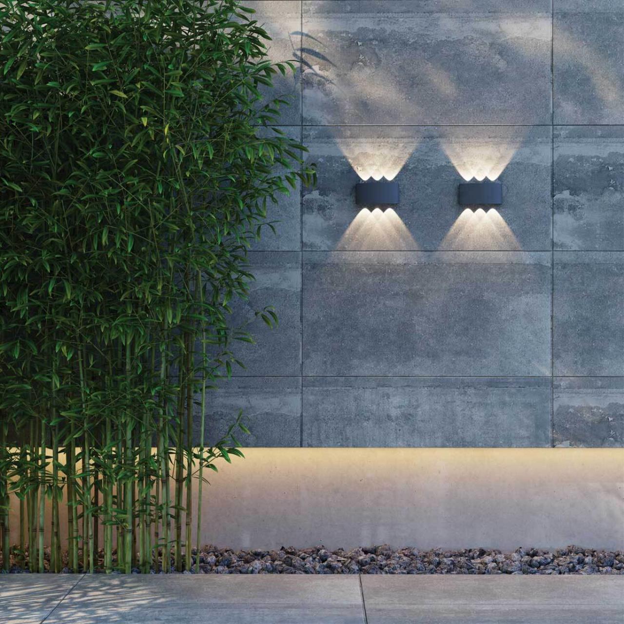 Придайте Вашему экстерьеру нотку современного стиля с настенными светодиодными светильниками CALLE в самом популярном тёмно-сером цвете с ярко-выраженной геометрией лучей. Такой эффект достигается благодаря оптическим линзам в корпусе светильника.