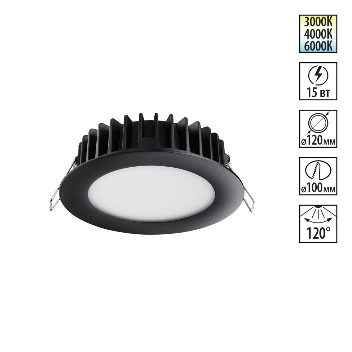 NOVOTECH 358951 SPOT NT22 444 черный Встраиваемый светодиодный светильник с переключателем цветовой температуры IP20 LED 3000К\4000К\6000К 15W 220V LANTE – купить в Москве по цене 1 400 руб.