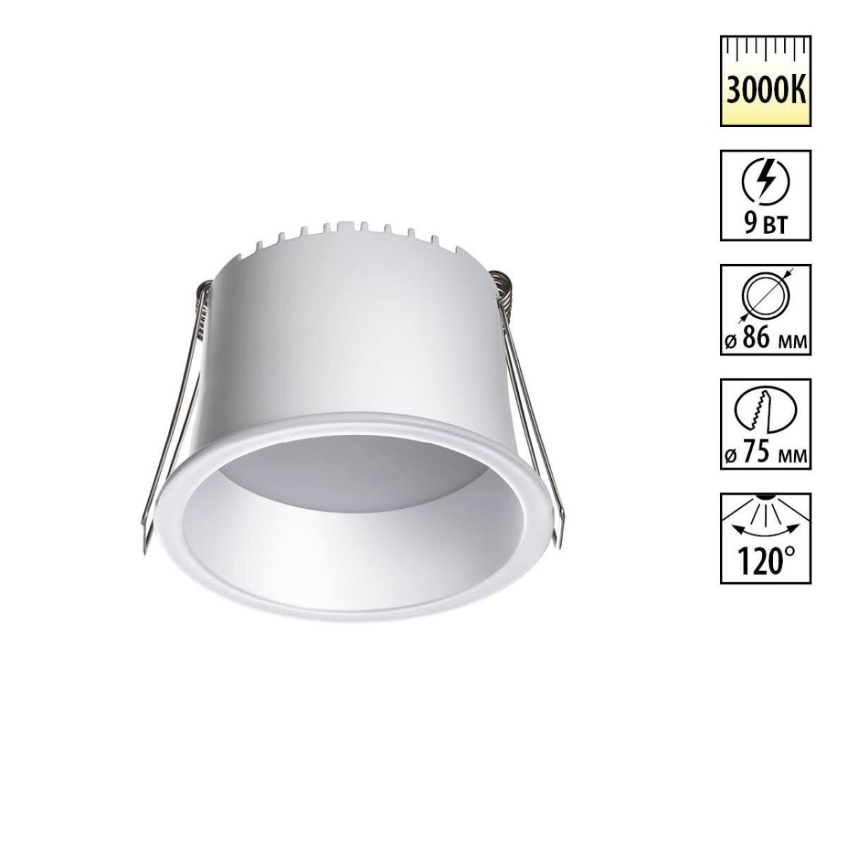 NOVOTECH 359234 SPOT NT23 536 белый Светильник встраиваемый светодиодный IP20 LED 9W 220V 540Лм 3000К TRAN