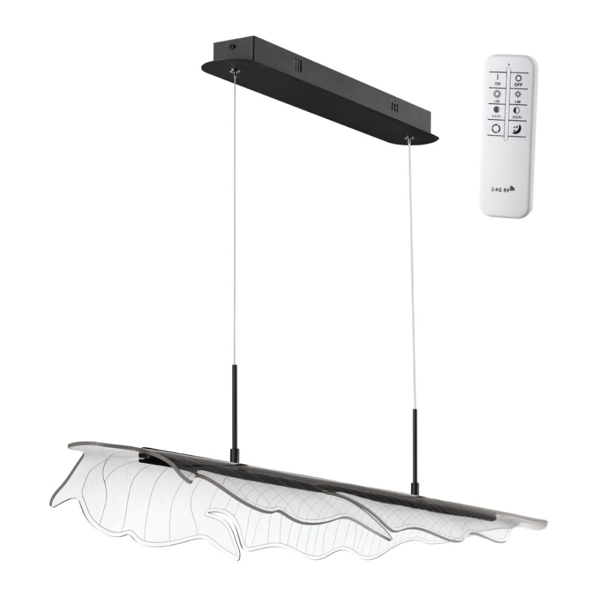 Подвесной диммируемый светильник со сменой цветовой температуры линии FOGLIO. Длина провода -1,2м. Управление светильником – пульт ДУ входящий в комплект. С помощью пульта ДУ Вы сможете сменить цветовую температуру (заменить теплый свет на холодный) и отрегулировать яркость от 10% до 100%.
