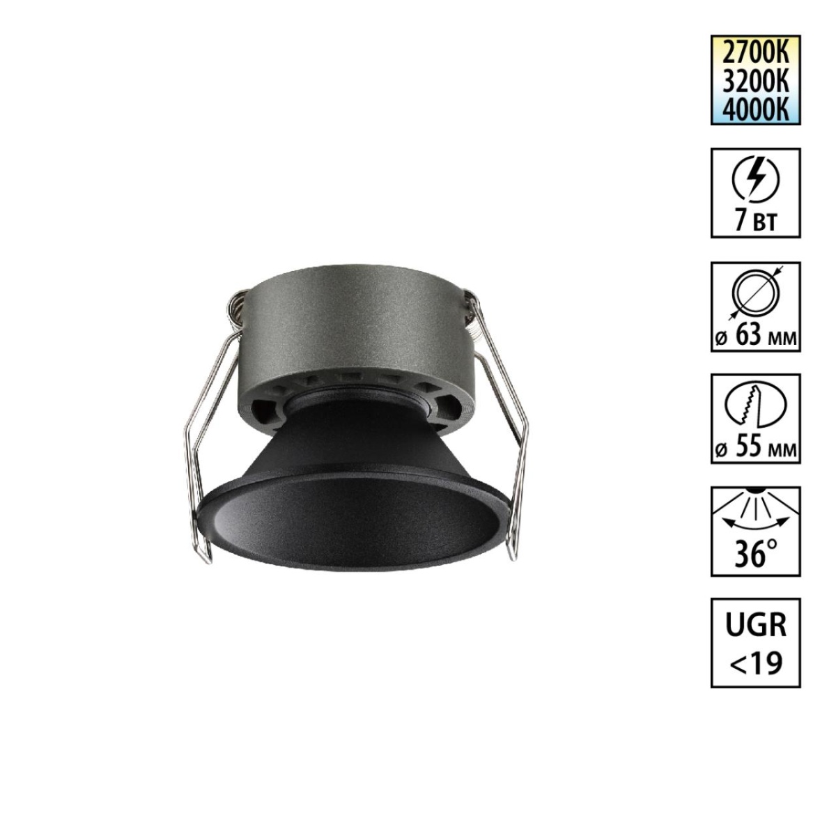 NOVOTECH 359849 WIR NT25 506 черный Светильник встраиваемый с переключателем цв. температуры IP20 LED 7W 220-240V 2700К\3200К\4000К NOVA – купить в Москве по цене 1 100 руб.