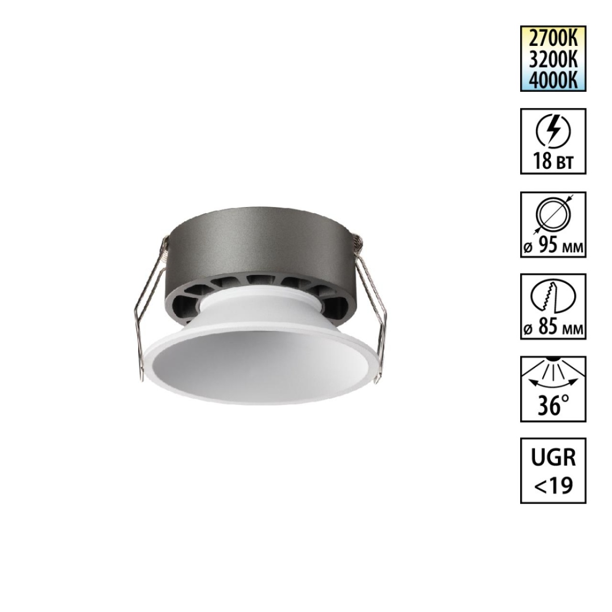 NOVOTECH 359854 WIR NT25 506 белый Светильник встраиваемый с переключателем цв. температуры IP20 LED 18W 220-240V 2700К\3200К\4000К NOVA