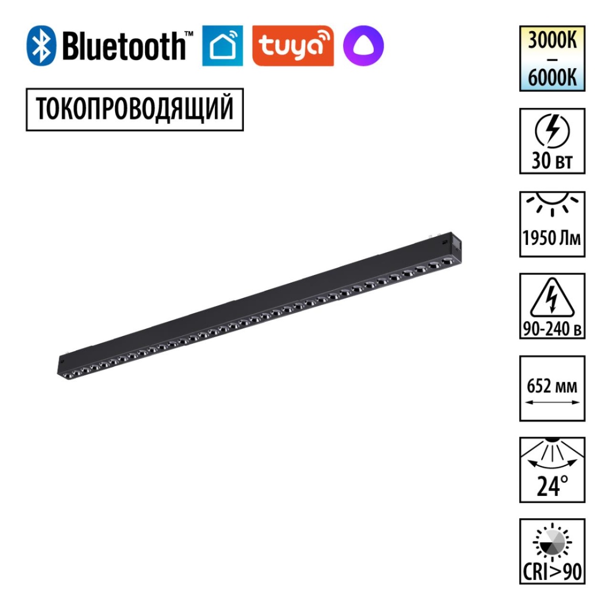 NOVOTECH 359935 PORT NT25 210 черный Трековый св-к диммир. со сменой цв.температуры, пульт ДУ/Tuya Smart Life IP20 LED 30W 3000-6000K 90-240V VECTOR – купить в Москве по цене 8 470 руб.