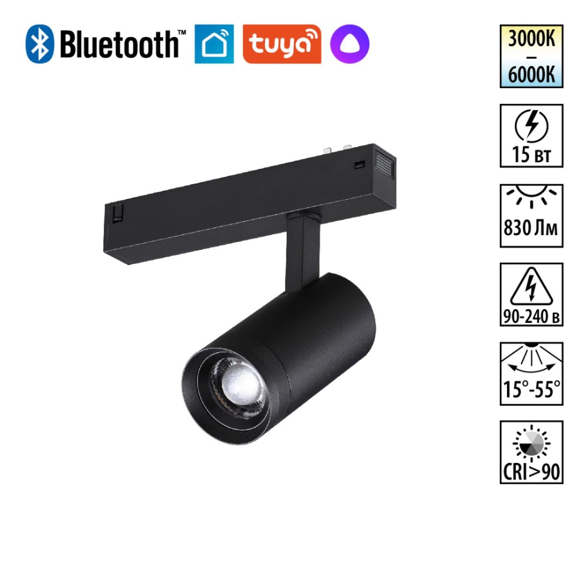 NOVOTECH 359962 PORT NT25 224 черный Трековый св-к диммир. со сменой цв.температуры, пульт ДУ/Tuya Smart Life IP20 LED 15W 3000-6000K 90-240V VECTOR – купить в Москве по цене 7 400 руб.