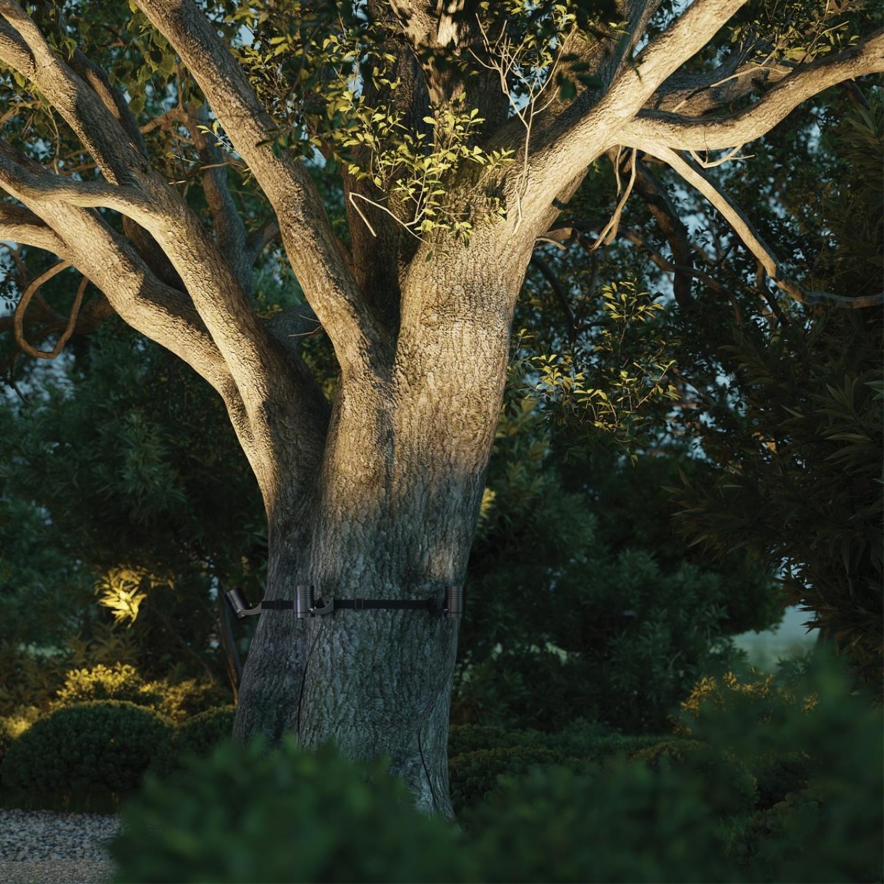 Ремень BELT позволяет надежно зафиксировать световое оборудование на стволе и при необходимости перевесить светильник в будущем, когда дерево станет выше или шире. Он выполнен из прочного нейлона, имеет крепления для двух светильников и крепление для соединения двух ремней между собой. На сегодняшний день это самый бережный способ подсветить крону дерева, не разрушая его ствол.