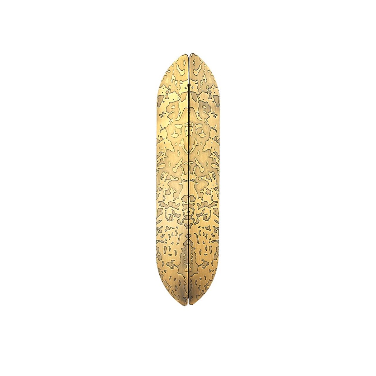 Линия настенных светильников отраженного света Brando в бронзовом цвете примечательна необычным декорированием металла технологией электротравление, за счет чего создается уникальный благородный образ светильника. Декорированные створки могут открываться и закрываться. Выключатель ― на корпусе. Светильник представлен в двух размерах: 310 и 510 мм.