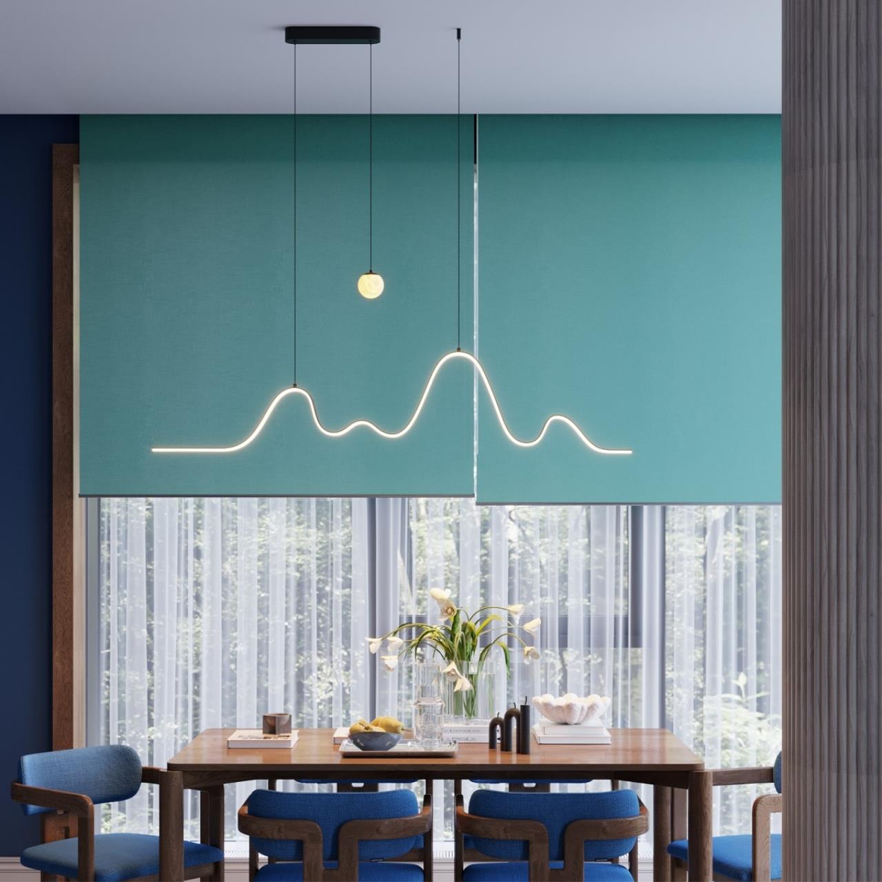 Светильник Moonlight похож на силуэт горы, словно подсвеченный лунным светом от шара из настоящего алебастра. Волнистая линия с LED-источником света 3000 К дает свет вниз, светильник может использоваться над островом или вытянутым пространством. Подвес-шар из настоящего алебастра может включаться отдельно при помощи настенного выключателя, таким образом светильник обеспечивает как более яркий свет, например для обеденной зоны, так и более камерный.