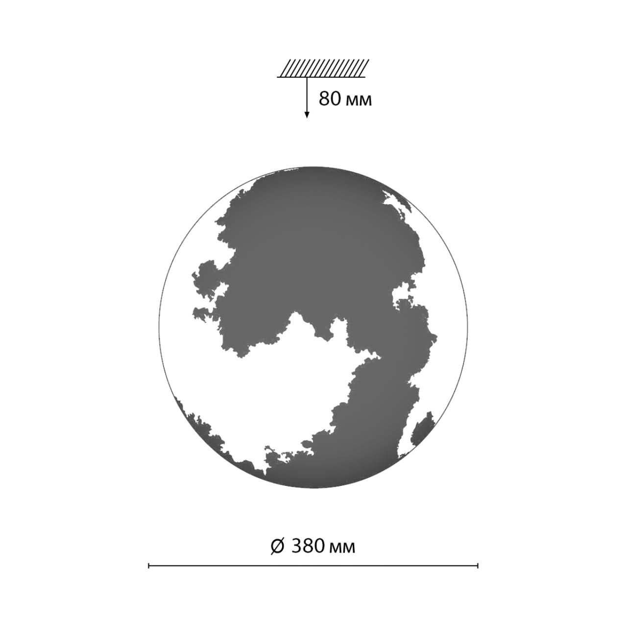 Светильник 3084/DL линии MON состоит из металлического основания (базы) и пластикового рассеивателя. Материал рассеивателя — высококачественный пластик марки PMMA 2.0 с глянцевой поверхностью без текстуры. На плафон нанесена полноцветная печать — рисунок поверхности Луны. Форма плафона: круглая, декорирована съемным ободом из пластика черного цвета. Степень защиты IP43 позволяет использовать светильник в определенных зонах влажных помещений. В комплект входит заменяемый LED-модуль с линзами мощностью 48 Вт, соответствующей лампе накаливания 460 Вт. Источник света имеет комфортную цветовую температуру 4000 К (белый свет).