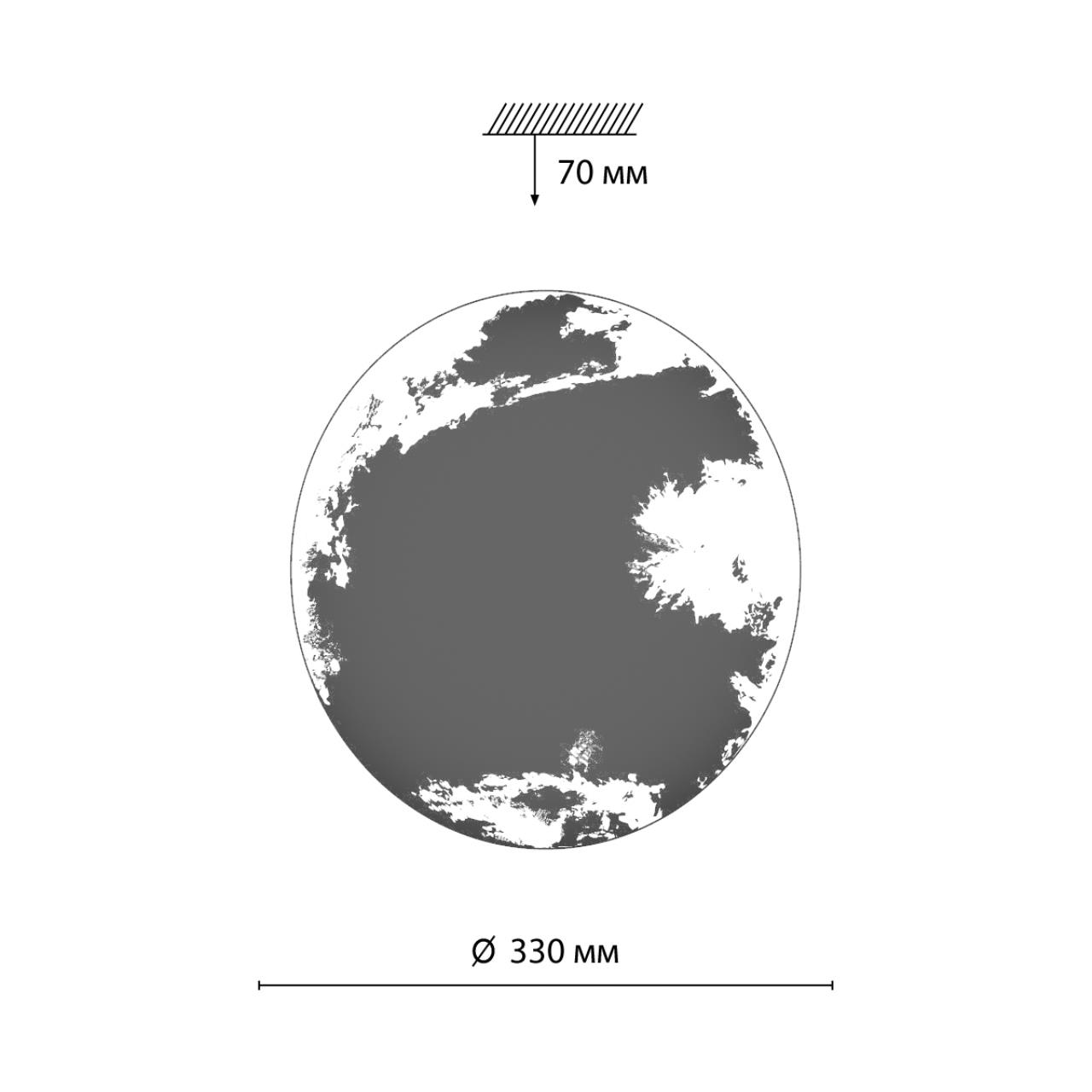 Светильник 3085/CL линии SPACE состоит из металлического основания (базы) и пластикового рассеивателя. Материал рассеивателя — высококачественный пластик марки PMMA 2.0 с глянцевой поверхностью без текстуры. На плафон нанесена полноцветная печать — рисунок с видом планеты Земля из космоса. Форма плафона: круглая, декорирована ободом из пластика темно-коричневого цвета под дерево. Степень защиты IP43 позволяет использовать светильник в определенных зонах влажных помещений. В комплект входит заменяемый LED-модуль с линзами мощностью 30 Вт, соответствующей лампе накаливания 270 Вт. Источник света имеет комфортную цветовую температуру 4000 К (белый свет).