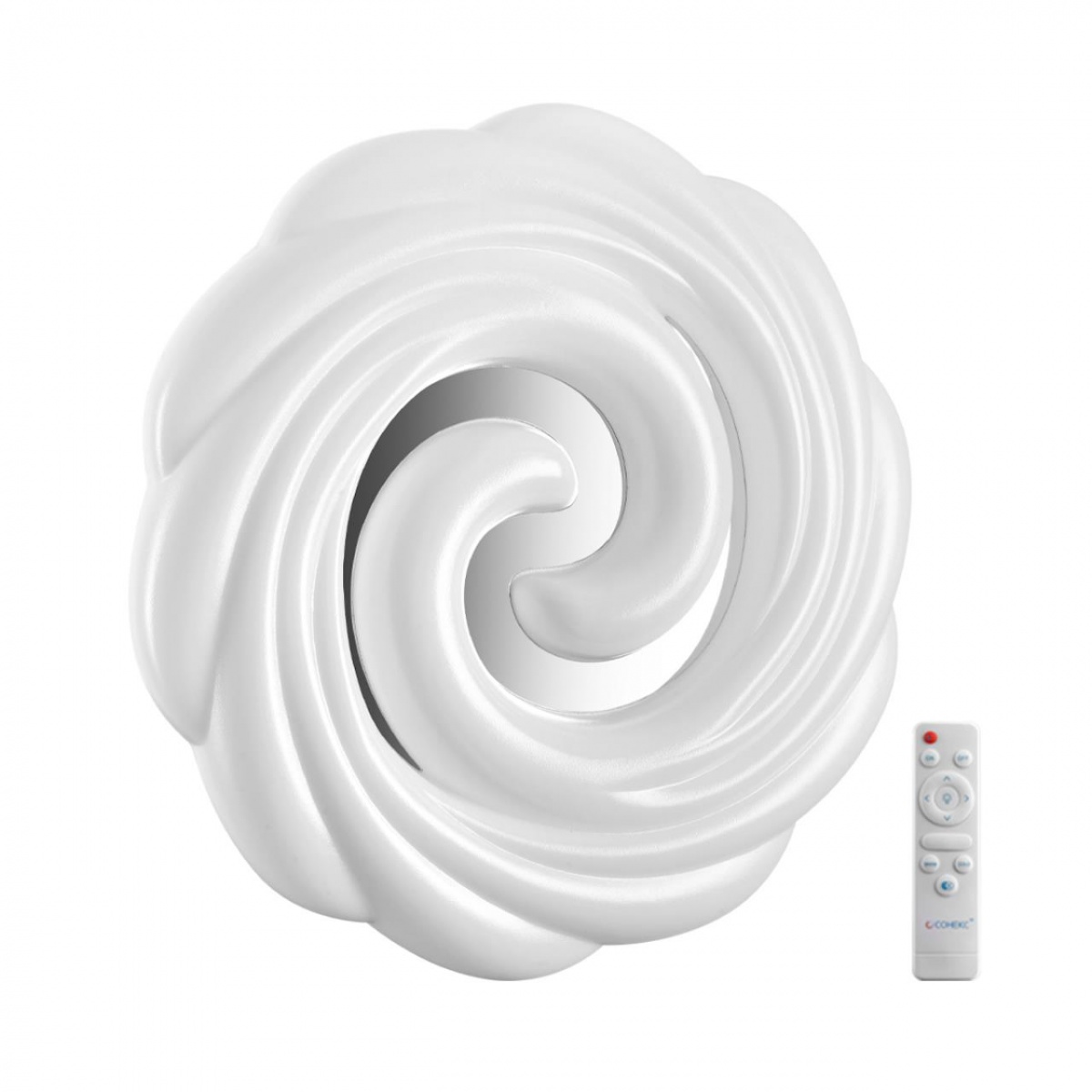Светильник 7675/DL линии AGAP состоит из металлического основания (базы) и пластикового рассеивателя. Материал рассеивателя - высококачественный пластик марки PMMA 2.0 белого цвета с матовой поверхностью и рельефной структурой. Пластик обеспечивает светильнику равномерное рассеивание и хорошее светопропускание. Форма плафона: круглая, декорирована центральной вставкой из пластика, цвет серебро. Степень защиты IP43 позволяет использовать светильник в определенных зонах влажных помещений. В комплект входит заменяемый LED модуль с линзами, мощностью 48Вт, которая соответствует лампе накаливания 440Вт. А также пульт ДУ (с креплением на стену), с помощью которого осуществляется плавное изменение цветовой температуры 3000-6000К, изменение яркости, переход в режим переключения теплого/белого/холодного/ночного света. Светильник имеет функцию "память".
