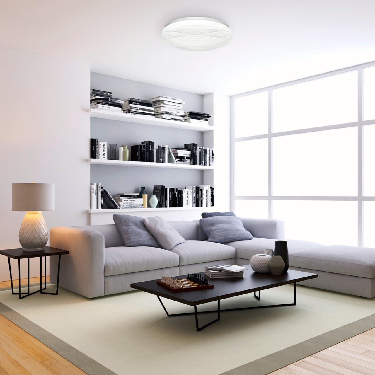 Модель быстро крепится к потолку посредством встроенной, удобной монтажной пластины, способна качественно освещать помещение площадью до 17 квадратных метров.