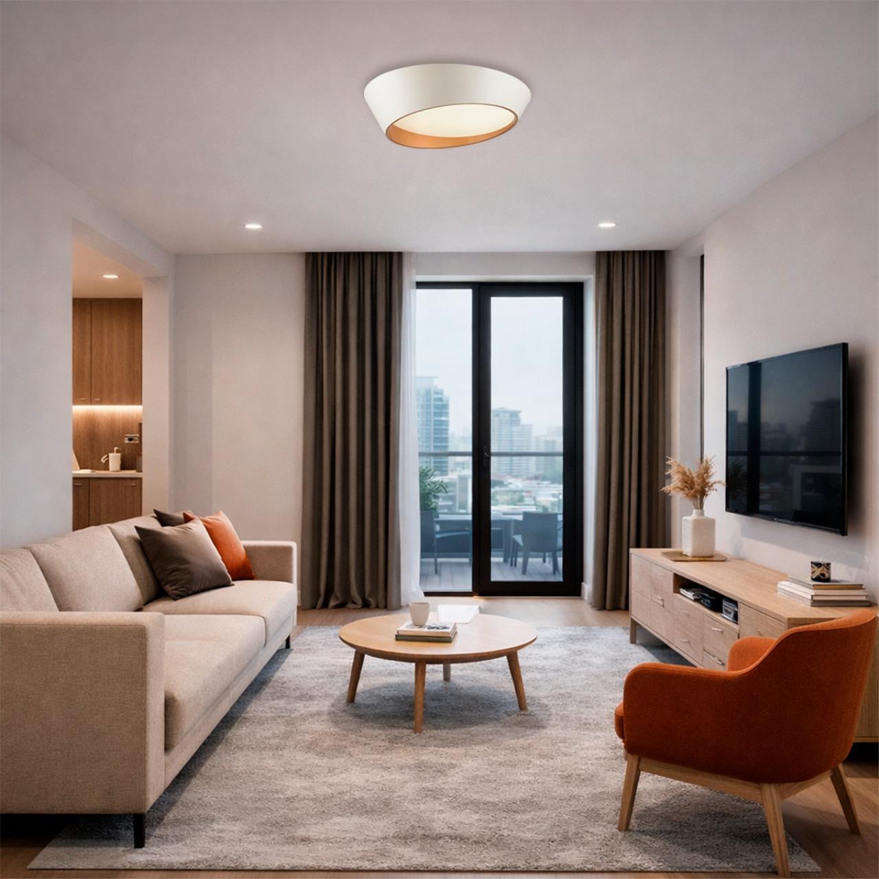 Модель быстро крепится к потолку посредством встроенной, удобной монтажной пластины, способна качественно освещать помещение площадью до 17 квадратных метров.
