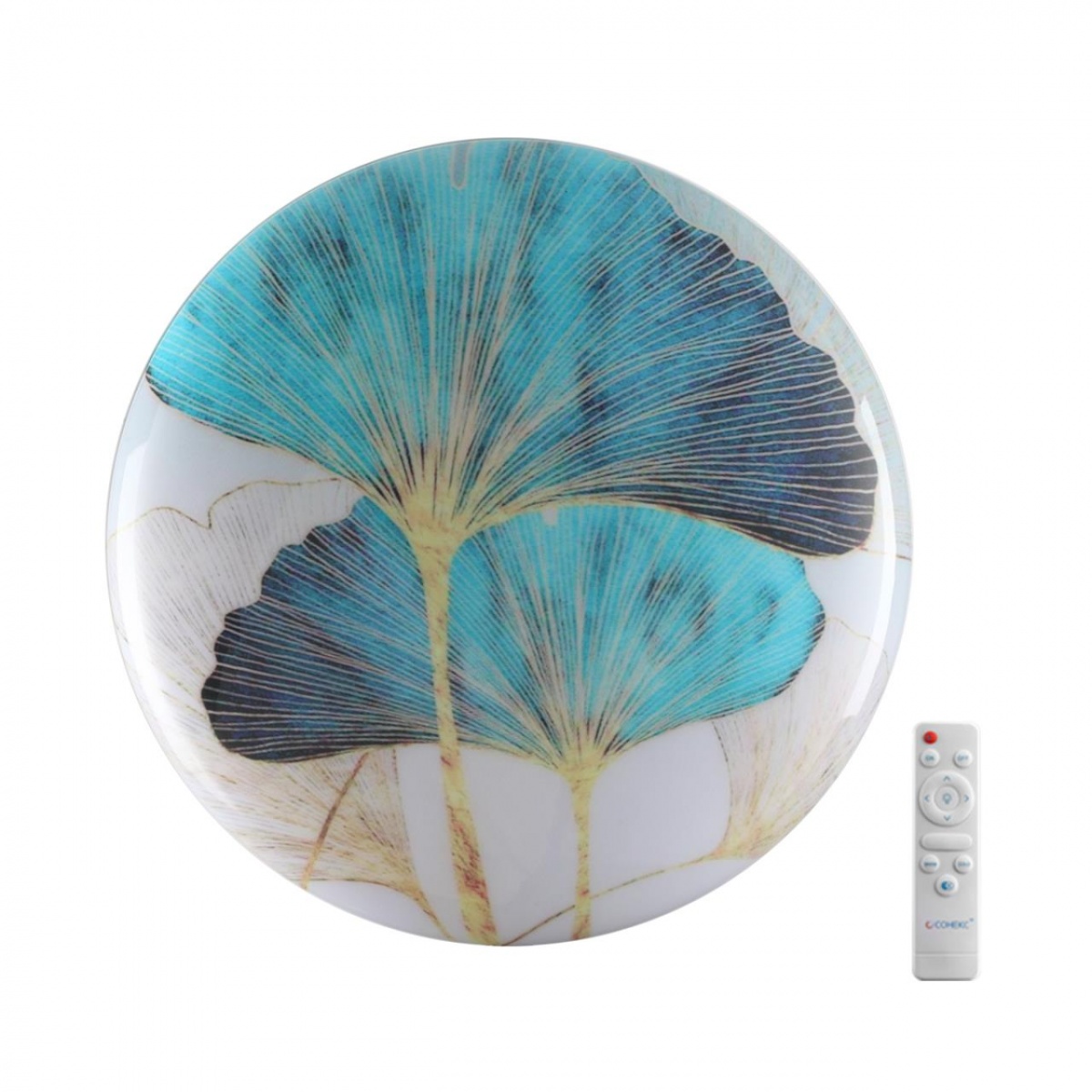 Светильник 7747/DL линии FLOREN состоит из металлического основания (базы) и пластикового рассеивателя. Материал рассеивателя — высококачественный пластик марки PMMA 2.0 цвета мульти с глянцевой поверхностью, обеспечивающий светильнику равномерное рассеивание и хорошее светопропускание. Форма плафона: круглая, декорирована орнаментом на плафоне с рисунком цветов и съемным ободом белого цвета. Рисунок на плафоне выполнен методом цифровой печати по технологии прямого нанесения красок на акриловый лист. С целью предотвращения выцветания красок поверх рисунка нанесен слой белой краски. После выдувания плафона при высоких температурах красочный рисунок приобретает стойкость и долговечность. Степень защиты IP43 позволяет использовать светильник в определенных зонах влажных помещений. В комплект входит заменяемый LED-модуль с линзами мощностью 48 Вт, соответствующей лампе накаливания 440 Вт, а также пульт ДУ, с помощью которого осуществляется плавное изменение цветовой температуры в диапазоне 3000—6000 К.